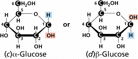 - Most common link is between the OH on carbon atom 1 and 4.